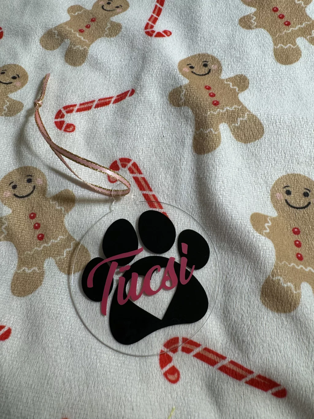 Kutya név, tappancs háttérrel karácsonyfadísz